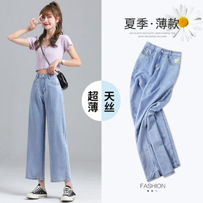 天丝牛仔阔腿裤女夏季薄款新款高腰宽松九分七分八分直...