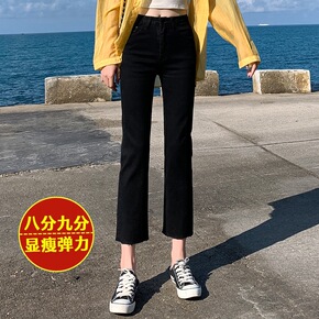 八分牛仔裤女秋冬2020新款黑色宽松小个子显瘦显高...