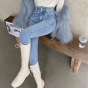 丹麦订单~品质炒好~保暖显瘦磨毛拉绒修身小脚牛仔裤...