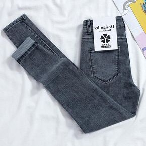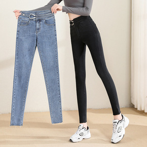 【70-200斤】春秋高腰弹力修身显瘦牛仔裤女小脚...