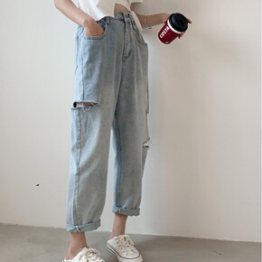 网红牛仔裤女新款高腰裤九分裤显瘦直筒裤小脚裤开叉裤...