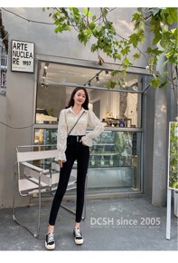 上腿巨显瘦疯狂推荐!高腰弹力显瘦黑色三粒扣小脚裤牛...