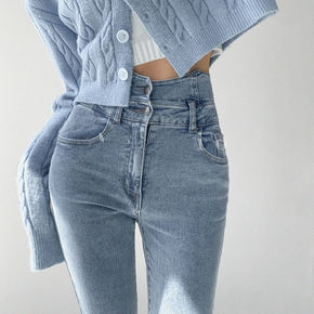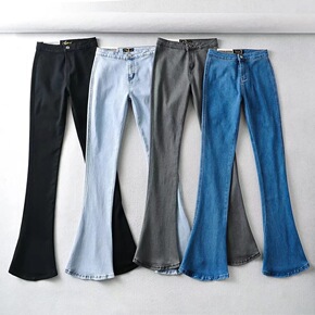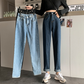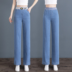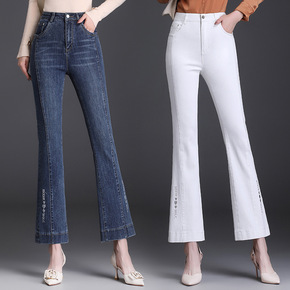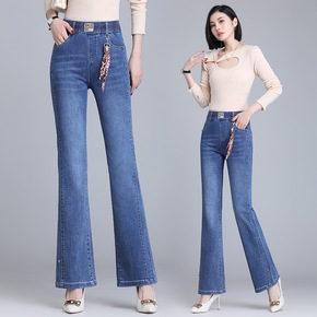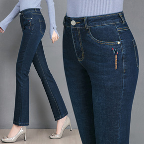 妈妈直筒牛仔裤弹力修身喇叭裤显瘦百搭大码高腰牛仔裤...