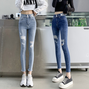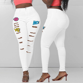 YH10660跨境亚马逊欧美牛仔 破洞时尚个性印花...