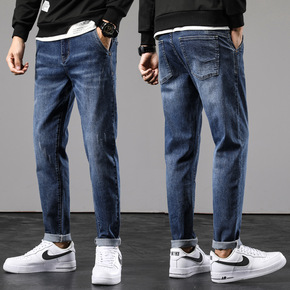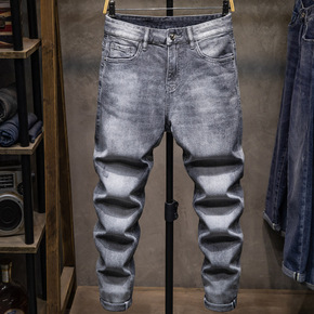 秋冬款牛仔休闲裤宽松修身潮牌长裤韩版潮流百搭微弹哈...