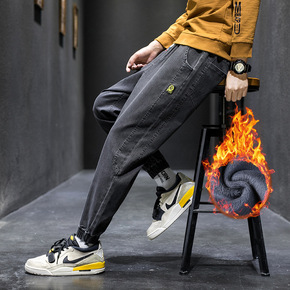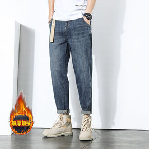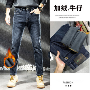 牛仔裤男2022秋冬新款加绒加厚保暖休闲潮牌宽松弹...