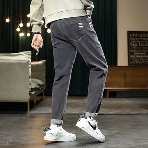 男式牛仔裤束脚2021秋冬新款韩版宽松长裤小脚青年...