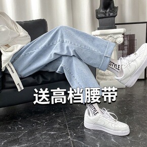 空气裤秋季新款牛仔裤学生男女韩版宽松阔腿显瘦直筒裤...