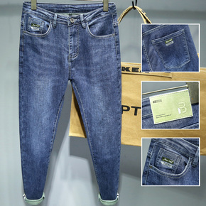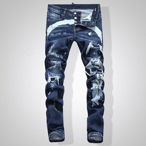 春秋新品 男士裤子印花牛仔小脚裤 弹力潮牌男式牛仔...