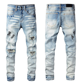 TRENDAMIRI 679潮牌破洞牛仔裤刺绣补丁...