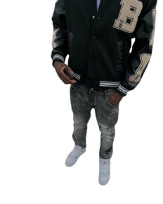 TRENDAMIRI 欧美高街潮牌浅色刺绣字破洞补...