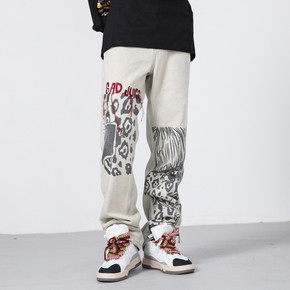 哈伦牛仔裤男春季国潮印花休闲弹力收口束脚裤子男士日...
