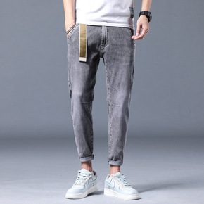 2021春季新款大码弹力牛仔裤男韩版潮流百搭宽松束...