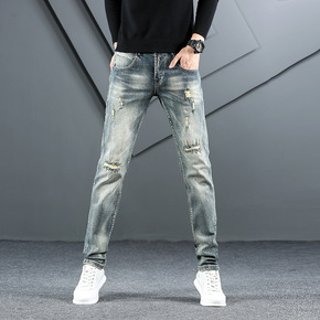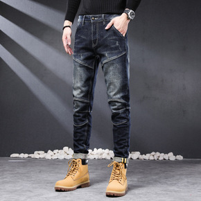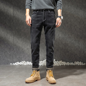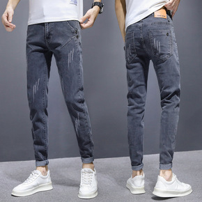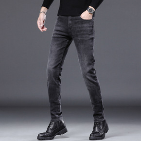牛仔裤男2021秋冬季新款修身小脚裤弹力小直筒百搭...