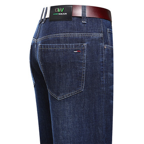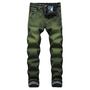 欧美大码男装简约牛仔裤男 纯色绿色弹力直筒长裤外贸...