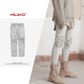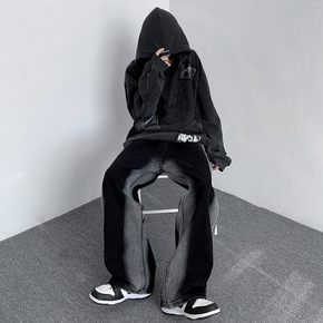 vibe风街头风做旧水洗破洞贴布直筒牛仔裤男盐系炸...