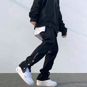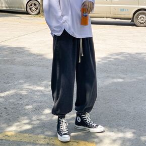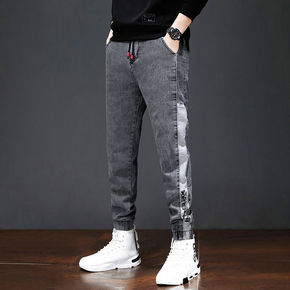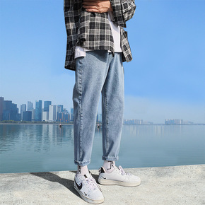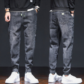 包邮裤子男春季黑色宽松牛仔裤港风潮流韩版百搭束脚裤...
