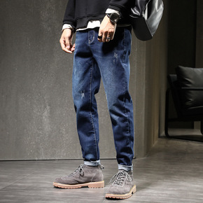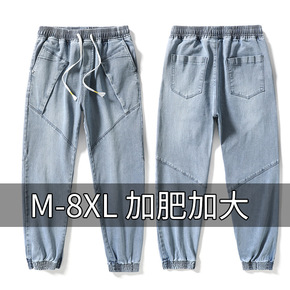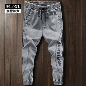 牛仔裤男士加肥加大运动裤韩版宽松小脚裤九分春装休闲...