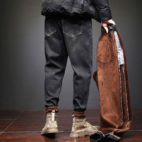 冬季工装牛仔裤男宽松潮牌多口袋直筒长裤秋季复古大码...
