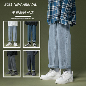 2021春秋季新款时尚休闲牛仔裤男宽松直筒长裤休闲...