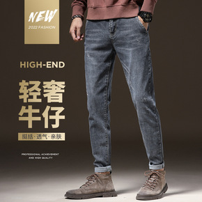 潮牌牛仔裤男2022春季新款青少年男士弹力休闲牛仔...