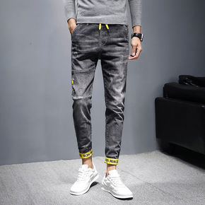秋季弹力牛仔裤男士韩版修身小脚九分裤潮流百搭工装休...