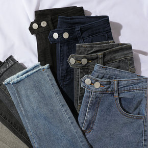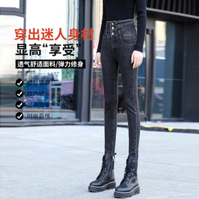 高腰牛仔裤女2022年新款显瘦紧身薄款小脚显瘦黑色...