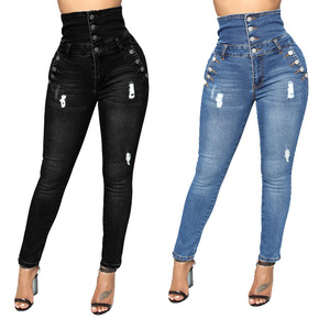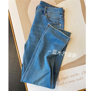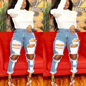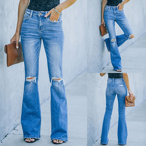 外贸独立站亚马逊2021秋季新款都市休闲破洞中腰洗...