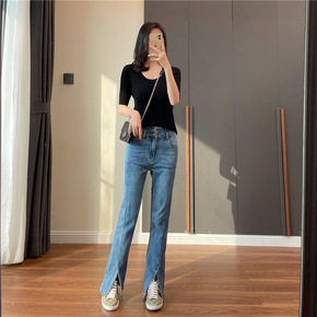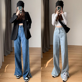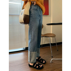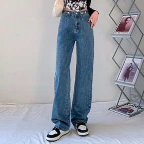 1605款高腰直筒女裤牛仔裤...