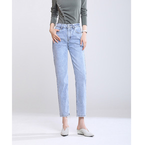 大码2022年春季长裤哈伦裤高腰水洗九分牛仔洗水裤...
