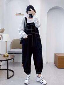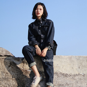 秋装新款牛仔背带裤宽松休闲显瘦连体裤女九分学院韩版...