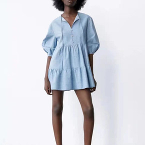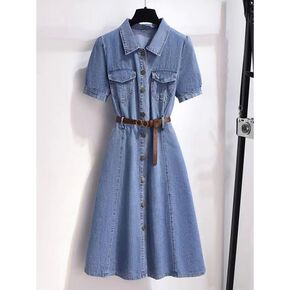 时尚牛仔连衣裙女装2022夏季新款小个子收腰洋气减...