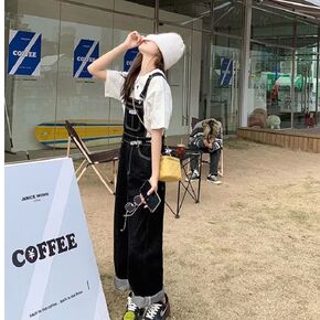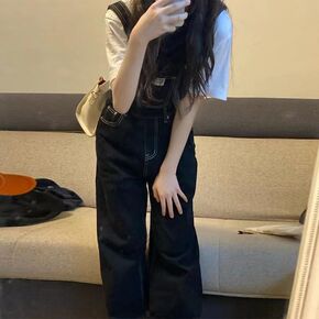 牛仔背带裤女学生韩版宽松阔腿2022新款春季宽松显...