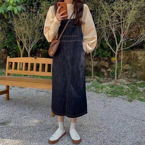 复古深蓝色牛仔背带裙春季韩版学生减龄宽松显瘦百搭中...