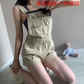 复古工装牛仔背带短裤女小个子夏季新款宽松显瘦高腰阔...