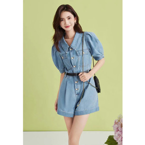 牛仔连体短裤女潮夏季2022年新款高腰显瘦减龄背带...