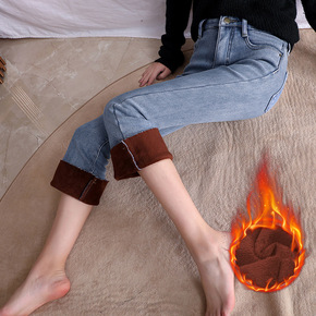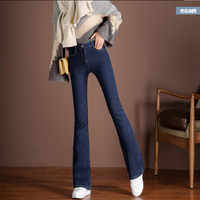 小微喇叭牛仔裤2021年秋冬季加绒加厚高腰女牛仔裤...