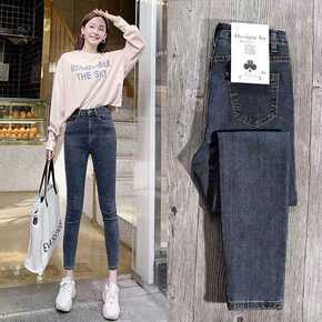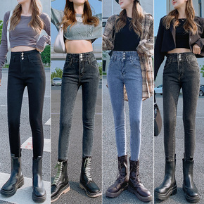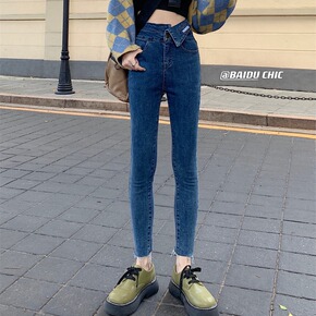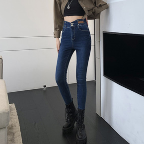 2021秋冬新款高腰弹力铅笔紧身小脚显瘦牛仔裤女复...