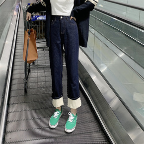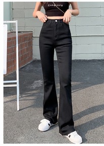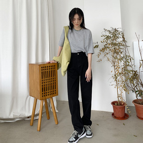 牛仔裤女2021秋冬季新款高腰宽松显瘦直筒百搭黑色...