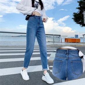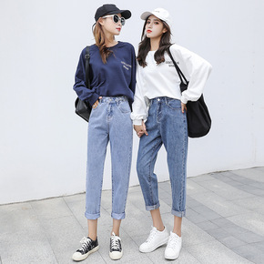 21新款秋季韩版高腰显瘦牛仔裤女ins韩版修身弹力...