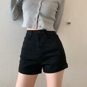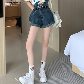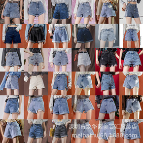 21035流浪牛仔短裤印花设计水洗磨破牛仔裤女...