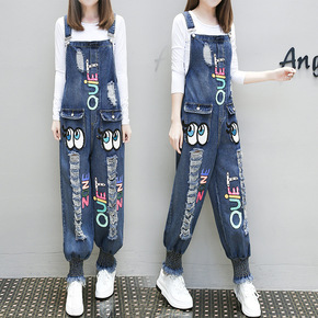 2022夏季背带牛仔裤女夏季韩版大码减龄吊带连体九...