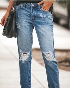 2021欧美女士牛仔裤无弹修身破洞水洗女士牛仔裤长...