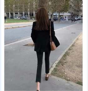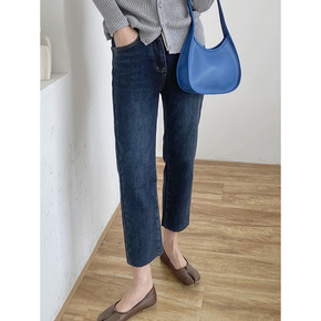 韩国黑色牛仔裤女高腰直筒九分薄款2022春秋新款韩...