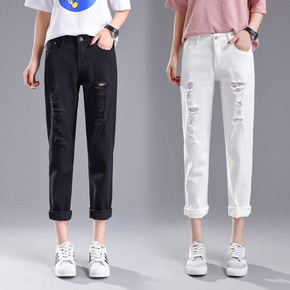 跨境破洞牛仔裤女2021新款韩版大码显瘦宽松学生b...