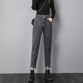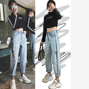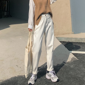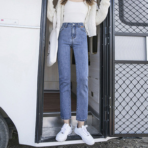 韩版哈伦牛仔裤女秋季2021新款高腰舒适宽松直筒显...