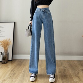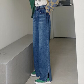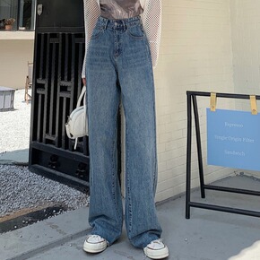 牛仔阔腿裤女21新款秋季韩版柔软笔直好版型宽松舒适...