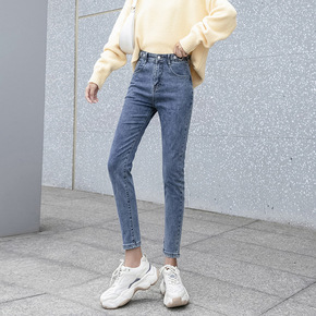 韩版高腰牛仔裤女2020秋冬新款长裤显瘦显高铅笔裤...