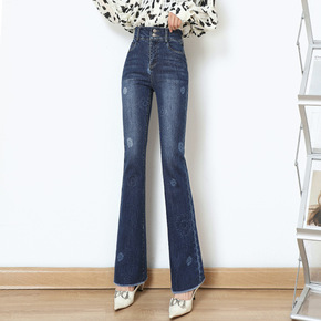 牛仔喇叭裤女2021秋季新款喇叭牛仔裤女高腰显瘦垂...