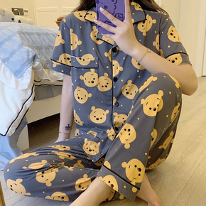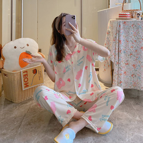睡衣女春秋2021新款韩版短袖长裤套装夏季网红爆款...